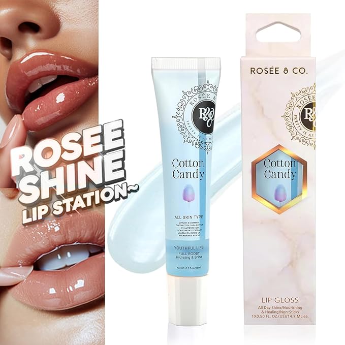 Rosee Lip Gloss Vegan & Cruelty Free Treatment, Professional Make up, Long Lasting Glossy with Shea Butter, Moisturize, Protect & Smooth, High Shine, Non-Sticky (n.Cotton Candy, 0.5)