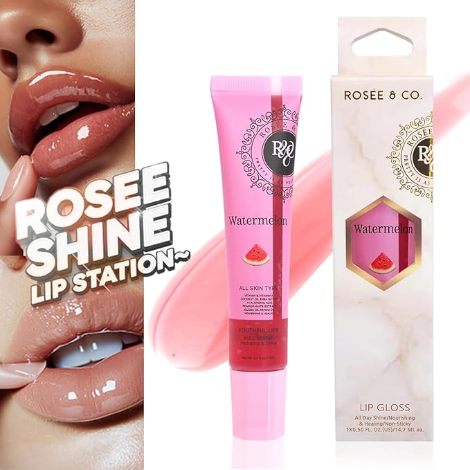 Rosee Lip Gloss Vegan & Cruelty Free Treatment, Professional Make up, Long Lasting Glossy with Shea Butter, Moisturize, Protect & Smooth, High Shine, Non-Sticky (j. Watermelon, 0.5)