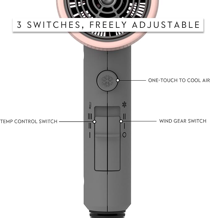 - Tourmaline Technology: Maintain neutral charge on hair's surface, leaving it looking conditioned and smooth while helping reduce frizz and static for healthy, shiny hair. And Blowing air up to 120°.