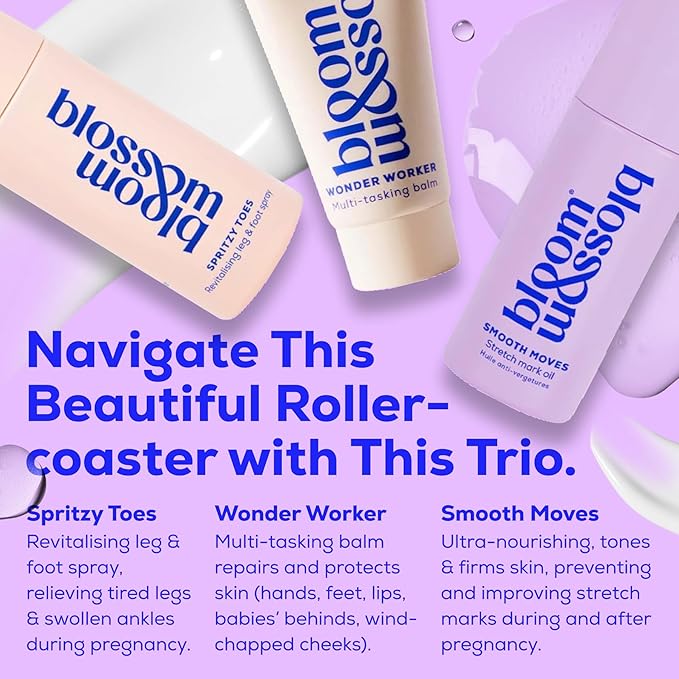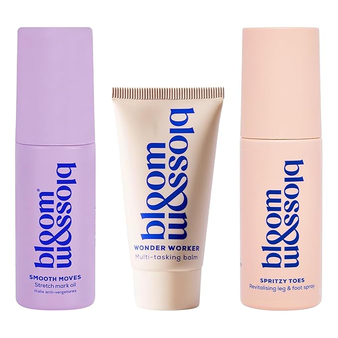 - Essential Set Includes: Three pregnancy skincare essentials – 40ml Revitalizing Leg Spray for tired legs, 25ml Multi-Purpose Balm for dry areas, and 40ml Stretch Mark Oil to maintain skin elasticity.