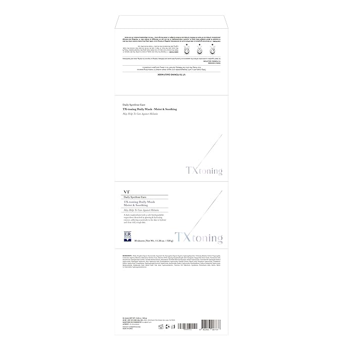 VT COSMETICS TX Toning Daily Mask 30 Sheets, Tranexamic Acid, Niacinamide, Glutathione for Acne Scars, Dark Spots, Sun Spots, Hydrating & Glowing Facial Mask, Fragrance-Free, Korean Face Mask