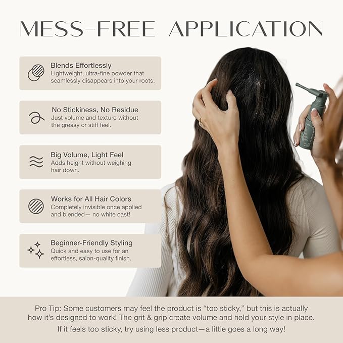 - Pro Styling Tips for Best Results – A little powder goes a long way. Start with a small amount and gradually build volume at the roots. For best results, apply sparingly and gently blend with fingertips. If the hair feels sticky or heavy, reduce the amount used. Tap the bottle to loosen powder for smooth, consistent application. Ideal for quick refreshes—carry it for instant touch-ups whenever your style needs an extra lift.