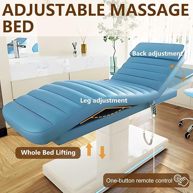 Massage Table-Electric Massage Table with Blue Modern Minimalist Style, Facial Beauty Table Includes Intelligent Angle Adjustment, Ambient Light