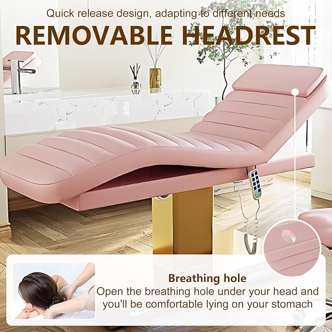 Massage Table-Electric Massage Table with Pink Light Luxury Style, Facial Beauty Table Includes Intelligent Angle Adjustment, Ambient Light