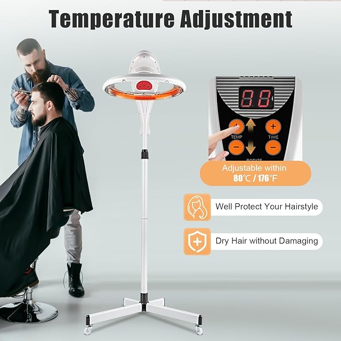 - Temperature Adjustment: By adjusting the temperature within 176℉, it can well protect the client's hairstyle and dry the hair without damaging it. Multi-temperature settings can meet the needs of different hair types and effectively lock in moisture and nutrients.