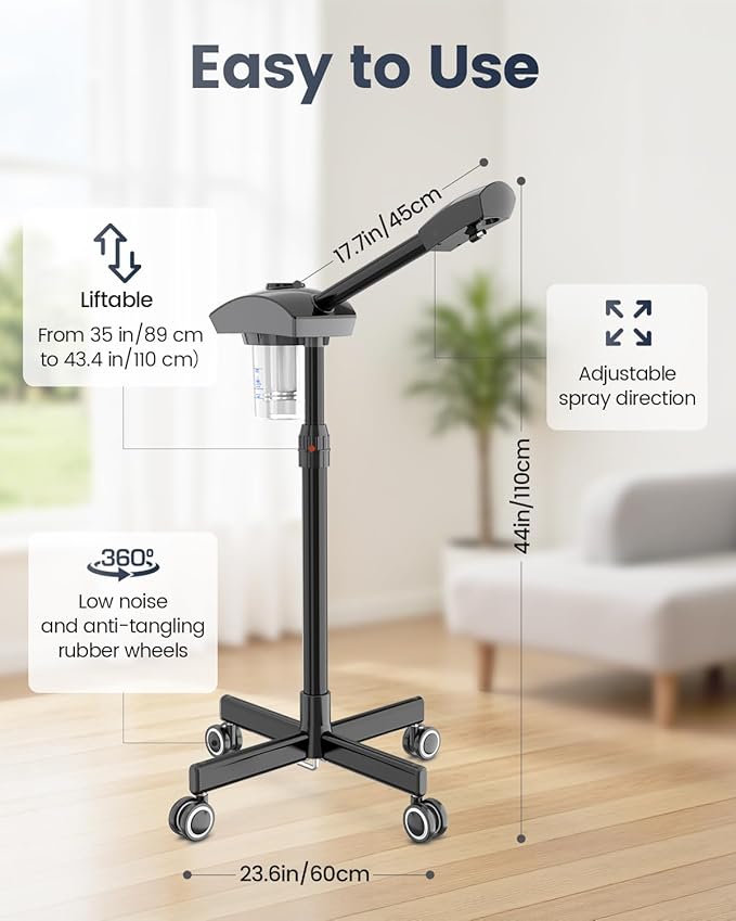 - 🔄 360° Full Coverage Steam & Large Capacity: Unrivaled versatility! The unique 360° rotatable nozzle directs steam precisely to your face, neck, or décolletage. A generous 400ml water tank ensures extended steaming without constant refills, providing efficient and convenient deep cleansing & hydration. An essential beauty tool for esthetician students, makeup artists, and home skincare enthusiasts.