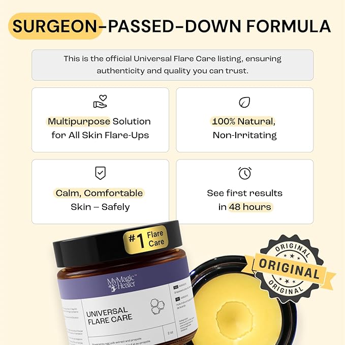 MyMagicHealer Universal Flare Care | Drawing Salve for HS, Boils, Cysts, Hemorrhoids, Pilonidal Cyst, Abscess | Anti-Chafing, Wound Care, Relief for Itching Skin w/Propolis & Egg Yolk Extract 2 oz
