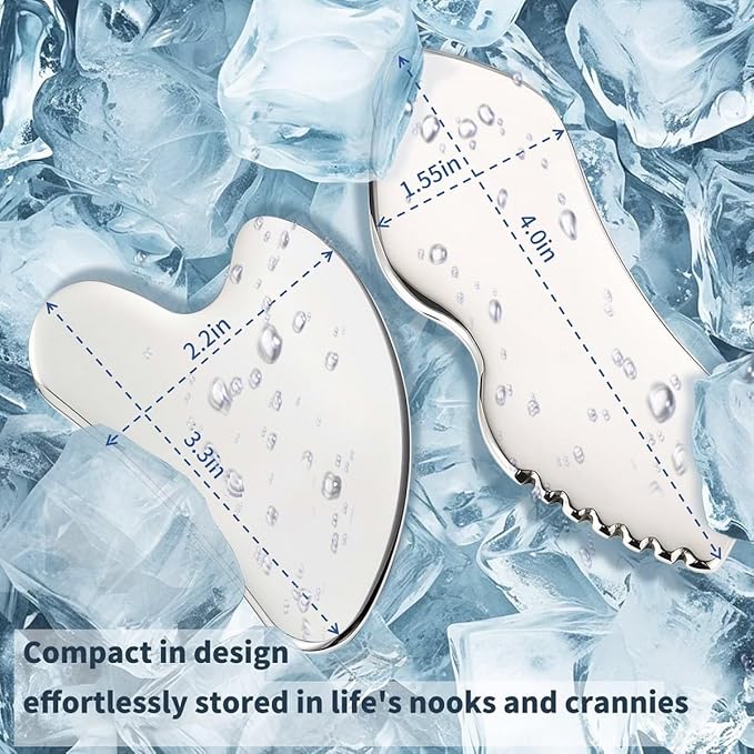 - Daily Glow & Renewal Ritual:Experience the ultimate skincare ritual with our stainless steel gua sha tool, designed to sculpt and rejuvenate your face for a radiant morning glow and a relaxing evening unwind. Perfect for health and wellness enthusiasts seeking holistic self-care.