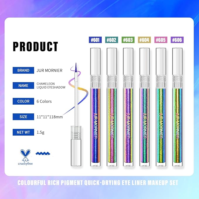 - 【Holographic chameleon eyeliner】When the light is viewed from different angles, it will change 2-3 colors to highlight the eye contour and make the eyes more charming