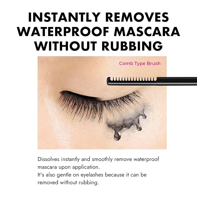 - 【Fast-Acting Mascara Remover for Sensitive Eyelids】This waterproof mascara remover quickly dissolves tubing mascara, volumizing mascara, and lash mascara—even the most stubborn mascara for women—gently and efficiently.