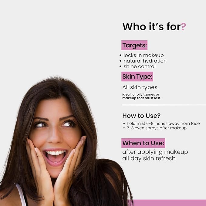 - 𝗘𝗔𝗦𝗬 𝗧𝗢 𝗨𝗦𝗘 – The Matte Setting Mist is simple and easy to use, just shake well before each use and spray 3-5 times at a distance of 4-6 inches away from your face. Enjoy smudge and transfer proof make up that keeps you fresh all day long.
