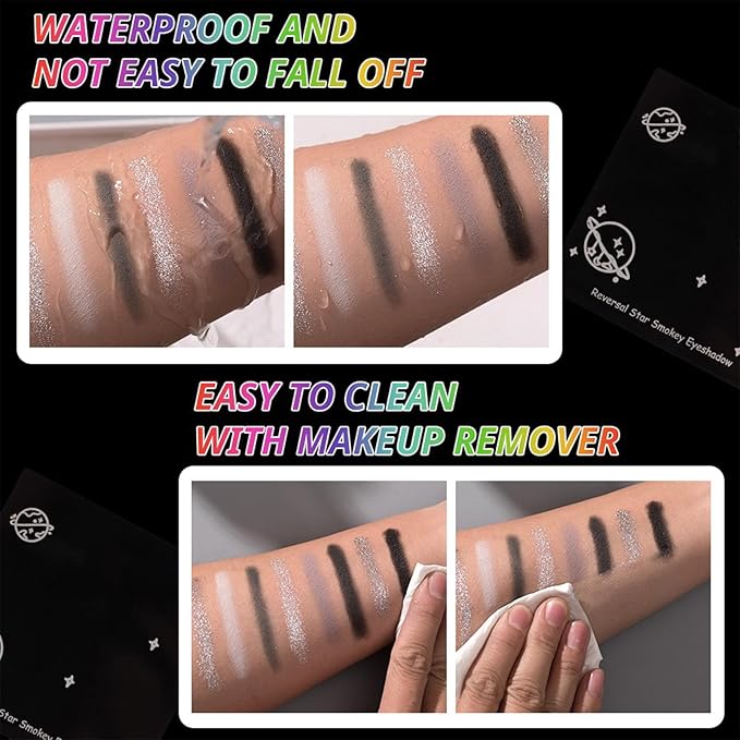 Erinde 9 Color Smokey Eyeshadow Palette, Highly Pigmented Matte & Glitter Shades,Black Silver Gray Eye Shadow Set for Halloween Makeup, Long-Lasting, Waterproof & Blendable, Reversal Star Smokey