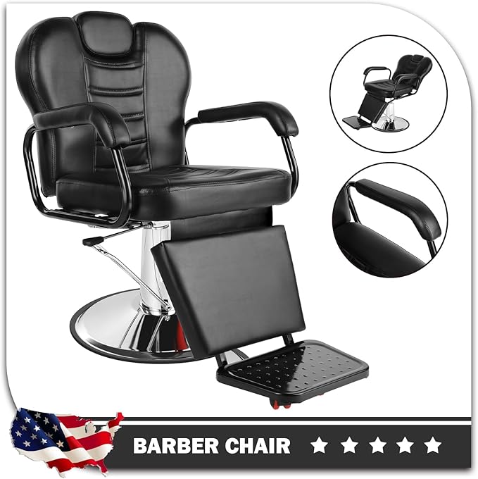 - Adjustable Height & Reclining: This hydraulic barber chair rotates 360° and reclines up to 135° for precise positioning; Height adjusts up to 5 inches to accommodate clients of different heights