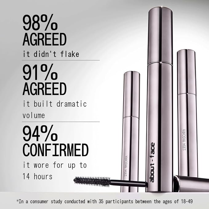 about-face Volumizing Mascara – Jet Black | Clean, Vegan, Cruelty-Free | Amplifies, Lengthens & Lifts Lashes | Smudge-Proof, Flake-Free Formula | 0.43 oz