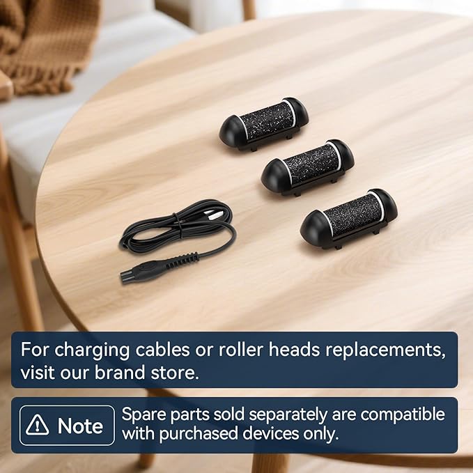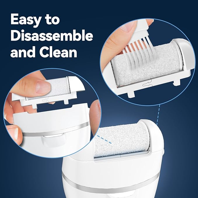 - 【ADJUSTABLE 2-SPEED CONTROL WITH 3 HEADS】 Customize your treatment. Easily switch between two speed settings and choose from three different roller heads (coarse, medium, fine) to match your skin's condition, from gentle maintenance to tackling tough calluses.