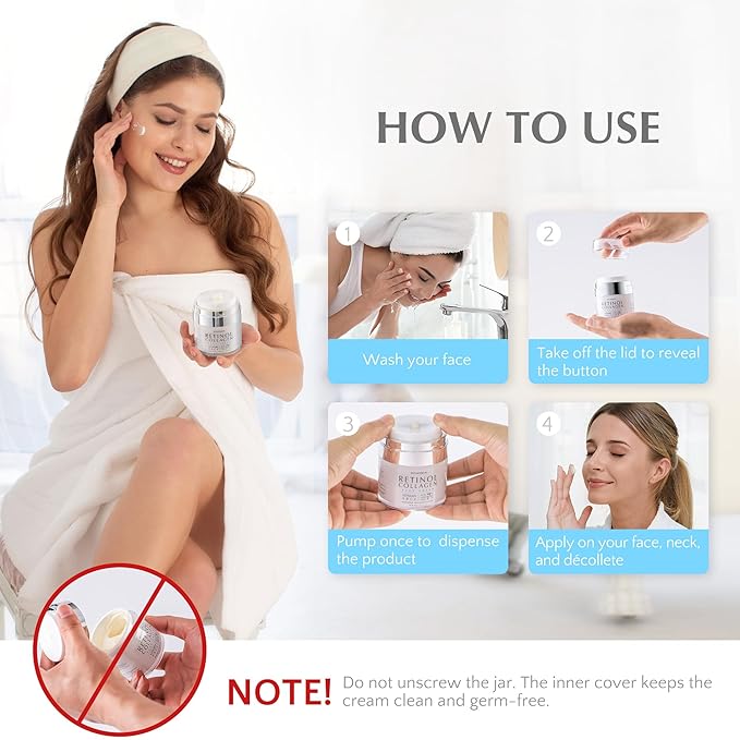 Retinol Anti Aging Face Moisturizer: Wrinkle Cream for Women, Collagen Day Night Repair Cream - Firming, Tightening & Lifting Neck Sagging Skin, 7% Hyaluronic Acid for Max Hydration, 1.7 Oz