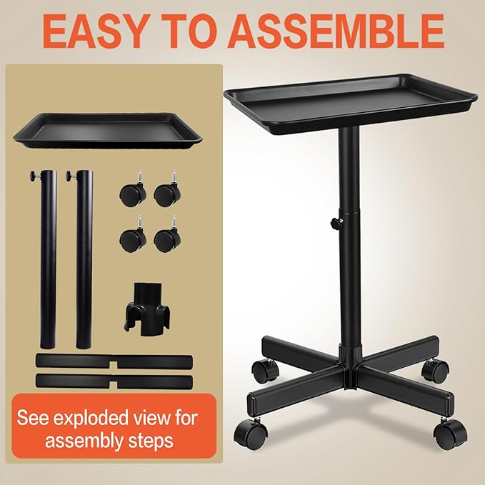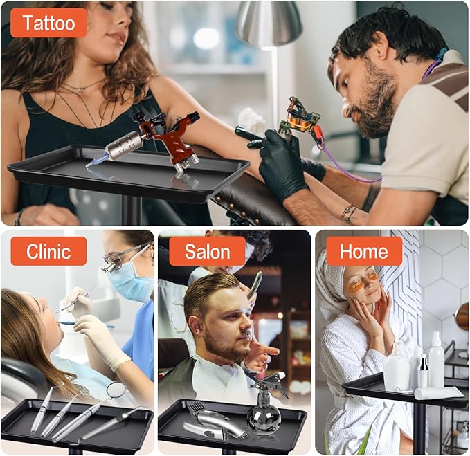 - This professional salon tray comes with installation instructions and accessories. It can be assembled in a few simple steps without the need for professional tools. It can be used as a hair salon tray, beauty salon tray trolley, dental salon rolling tray, tattoo tray, or for home use.