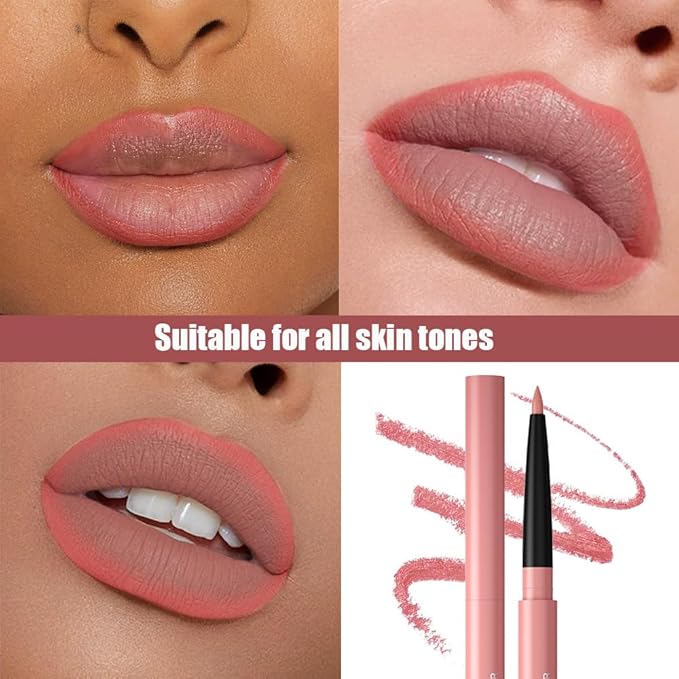 Gel Lip Liner Pencil for Women, Nude Pink Matte Long Lasting Lip Liner Lipstick 24 Hour, High Pigmented Lips Makeup Retractable Liners Waterproof Smudge Proof, Vegan & Cruelty-Free 01