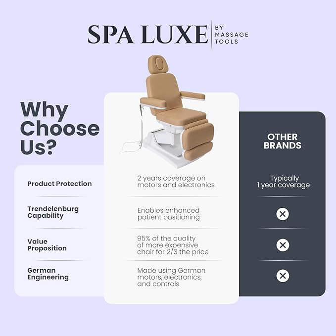 - ELECTRIC MASSAGE CHAIR AND PROFESSIONAL BED TECHNOLOGY: Four-motor fully electric system with ergonomic hand remote for precise adjustments. Built-in wheels for easy salon transportation. Ideal for esthetician supplies, facial steamer procedures, massage sessions, and medical office necessities. Functions as both medical exam table and massage bed for versatile patient convenience.