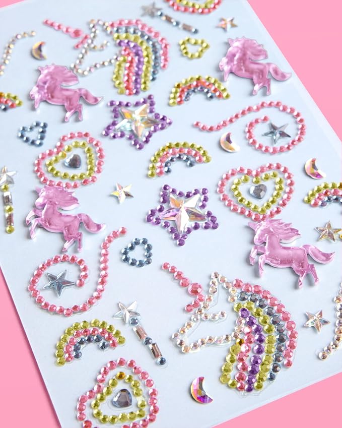 xo, Fetti Unicorn Face Gems, Rainbow - 35 pcs. | Cute Magic Face Stickers, Heart Birthday Rhinestone Accessory, Rainbow Decorations, Starlight Gems