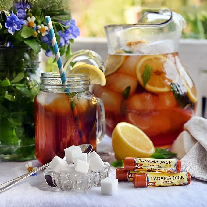 Panama Jack Sunscreen Lip Balm - SPF 45, Broad Spectrum UVA-UVB Sunscreen Protection, Prevents & Soothes Dry, Chapped Lips, Sweet Tea, 12-pack