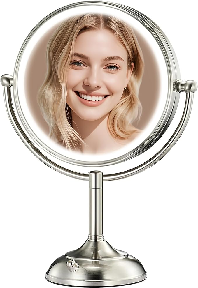 - 【Super Large 9.3-inch Mirror with Clear Seamless Crystal Surface】Magnifying mirror with light features a 9.3-inch enlarged seamless crystal glass surface, providing you with a flawless reflection that is free from distortion or any unwanted glare. This makeup mirror with lights no reflection, no glare, no fingerprints - just the perfect mirror for all your beauty needs