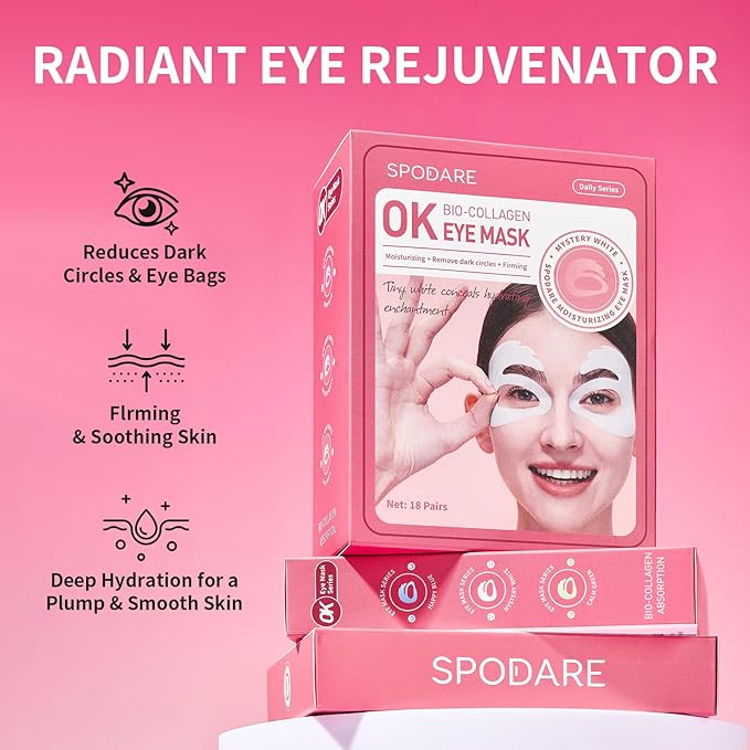 Bio-Collagen OK Eye Mask, Firming & Hydrating Under Eye Patches for Puffy Eyes and Dark Circles, Deep Moisturizing & Soothing Eye Mask for Women and Men - 6 Pairs, Mystery White