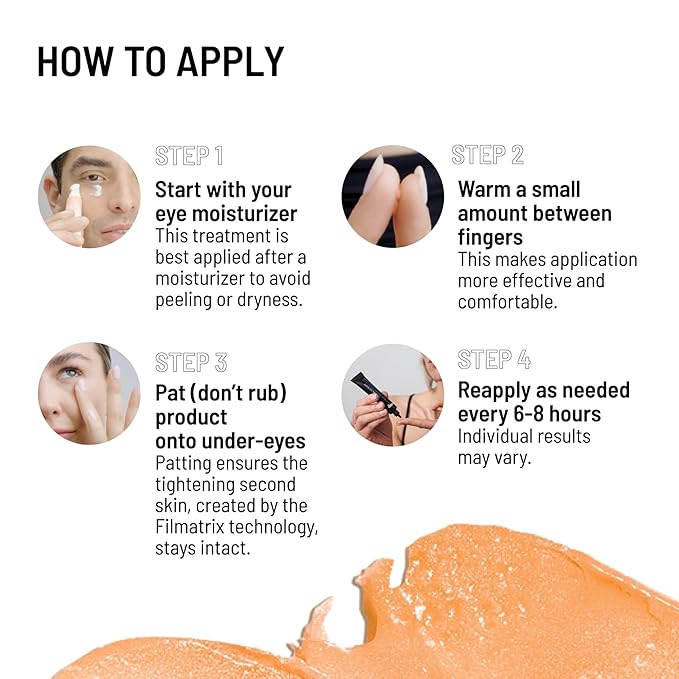 - SAFE, EFFECTIVE INGREDIENTS - Combined with caffeine and peptides, our proprietary Filmatrix technology creates a second skin film that tightens the eye contour to visibly reduce under-eye bags, puffiness, and dark circles.