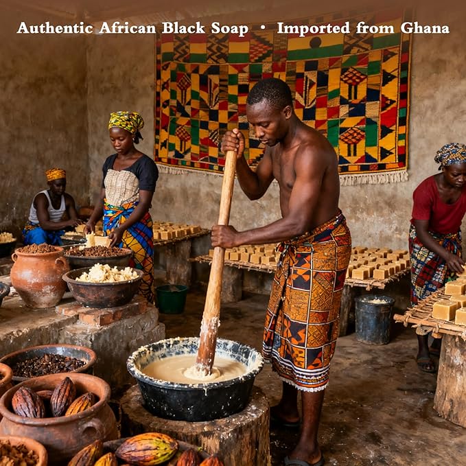 - 【Handcrafted & Natural Ingredients】 Made through a traditional cold-process method with 100% natural plant oils. Free from harsh chemicals or artificial additives, gentle for all skin types. Comes in African-inspired packaging with a free fine-mesh lathering net that creates rich, cloud-like foam for a softer, more effective cleanse.