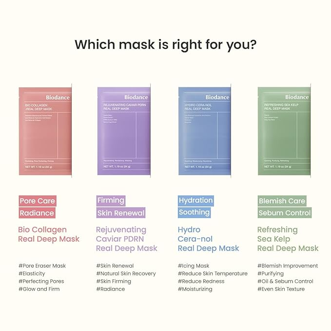 BIODANCE Multi-Care Experience Kit: Caviar PDRN, Bio Collagen & Ceramide Panthenol & Sea Kelp Mask Dicovery Bundle — All-in-one Korean Skin Care, Gifts for women, Skin Care Set