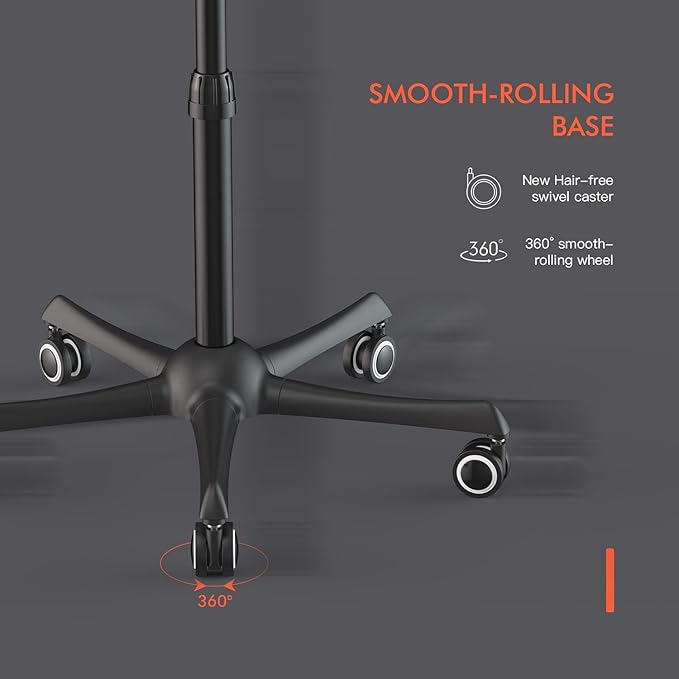 - Convenient and adaptable: The hair dryer comes with a 9ft power cord, 3 clips, and 5 upgraded rollers, making it easy to move around in both home and salon environments. The improved roller design prevents hair from getting caught in the wheels. The hair dryer hood can be easily adjusted in height from 30 inches to 55 inches, perfect for any situation.