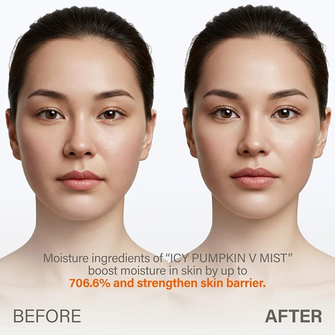 - Icy Pumpkin V Mist – Soothes puffiness with pumpkin extract and reduces redness with a cooling effect.