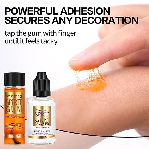 - Gentle Yet Strong Formula: Spirit gum features a gentle but strong liquid adhesive formula that is skin-friendly. It offers a flexible, strong hold for prosthetics and special effects, making it ideal as face glue or body glue during long-term wear