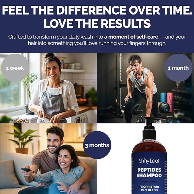 - SHINY LEAF QUALITY, MADE IN USA – Crafted in GMP-certified facilities, Shiny Leaf combines peptides with botanical extracts to create premium formulas. Our DHT shampoo is trusted by thousands to support fuller-looking, healthier-feeling hair.