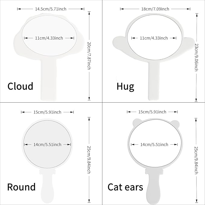 - 【You will receive】 Two mirrors, a white cloud-shaped handheld mirror and a white square mini handle mirror.