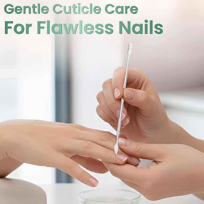 - Dual Head Nail Pusher and Scraper: This nail cleaner tool features a dual head design for various nail care tasks. One end has a curved edge for gently pushing back and shaping cuticles, while the other has a sharp scraper blade to remove dead skin and dirt from the nail plate. It’s perfect for manicures, pedicures, gel nail polish removal and maintaining clean, healthy nails.