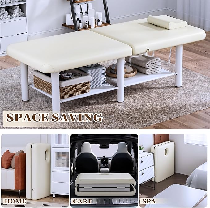 - 【ADJUSTABLE BACKREST & LARGE UNDERTABLE SHELF】Wide massage table maximize convenience and organization with a fully adjustable folding backrest for precise client positioning during facials, massages, and treatments. The spacious undershelf storage keeps all your oils, tools, and linens within easy reach, streamlining your workflow