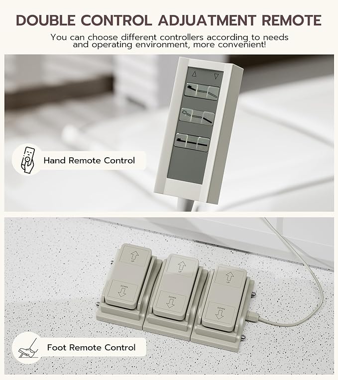 - Dual Control System: Includes both handheld and foot pedal remotes for seamless operation. Clients can conveniently adjust the facial bed themselves, while professionals can make hands-free adjustments via the foot pedal — keeping their hands sterile and the workflow uninterrupted during procedures