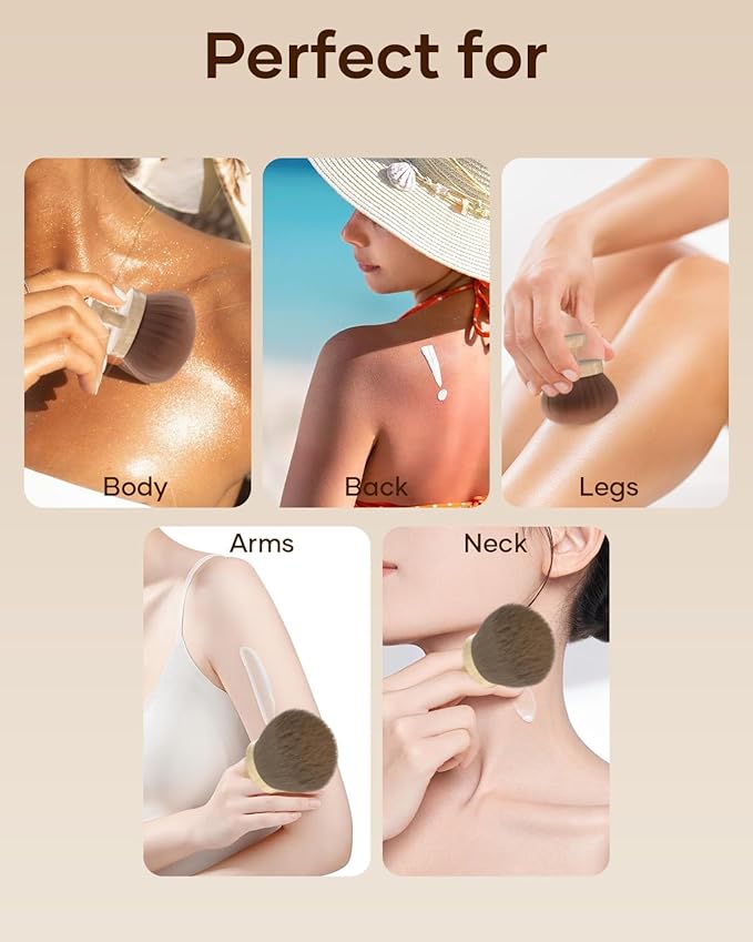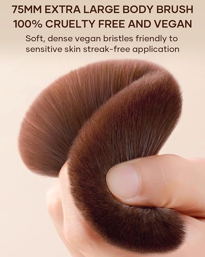 - EXTRA-LARGE MAKEUP BRUSH: Oversized 75mm oval-shaped brush head allows for efficient coverage, only takes 10s to achieve a perfect, poreless, and beautiful makeup finish. Perfect brush for leg, body, cheek makeup and back tanning applicator