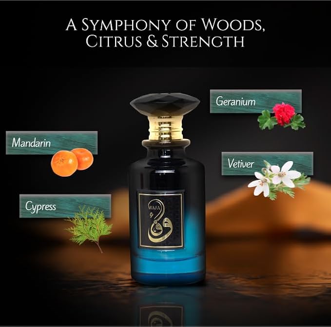 Prince Parfums Dubai – Wafa Men’s Eau de Parfum 3.4 Ounces – Bold Luxury Cologne with Mandarin, Cypress, Geranium & Musk – Citrus Freshness and Refined Woods for the Modern Man