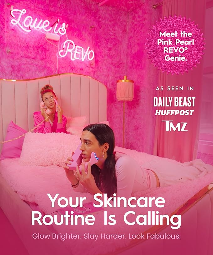 REVO Genie | 3-in-1 Face & Neck Beauty Massager with Heat, 3 Light Therapies, Smart Vibration | Red Light, Blue Light, Green Light Therapy for Smooth Glowing Skin - Pink Pearl