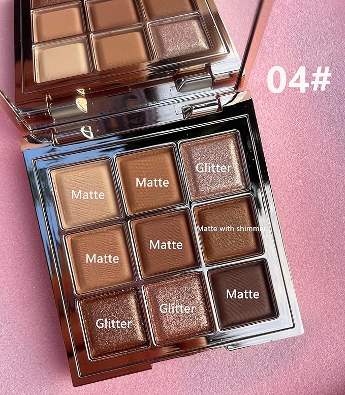 - SAFE INGREDIENTS AND GENTLE ON SKIN : This 9-color makeup eyeshadow palette is crafted with high-quality, safe ingredients. Silky-soft powder, lightweight texture glides on effortlessly with a brush or fingertips, perfect for blending, highlighting, and defining eyes, brows, and facial contours. Cruelty-free tested, suitable for all skin types and the eye area. Easily removes with makeup remover or cleansing wipes.