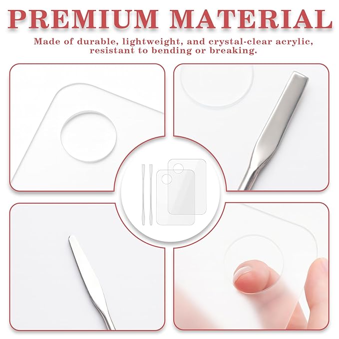 - Portable & Travel-Friendly: The compact size fits comfortably in your hand and makeup bag. Each package includes 2 acrylic palettes and 2 spatulas—ideal for both home use and travel.