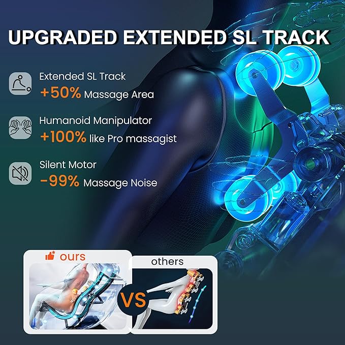 - ๐๐๐ซ๐จ ๐๐ซ๐๐ฏ๐ข๐ญ๐ฒ ๐๐๐ฌ๐ฌ๐๐ ๐ ๐๐ก๐๐ข๐ซ - ๐ ๐ฎ๐ฅ๐ฅ ๐๐จ๐๐ฒ ๐๐ข๐ซ๐๐๐ ๐ฌ, ๐๐๐ฅ๐ ๐๐ง๐๐๐๐ข๐ง๐ : Inspired by NASAโs zero-gravity design, 3 recline angles (Initial, Comfort, Deep) lift feet to heart level, reducing spine pressure by 50% and boosting blood flow. Dozens of airbags wrap shoulders, arms, waist, hips, calves, and feet โ plus upgraded foot rollers & calf kneading. Ideal for people who stand long hours (teachers, retail staff) or have plantar fasciitis, this massage chair full body eases sore muscles and ends "post-work leg pain."