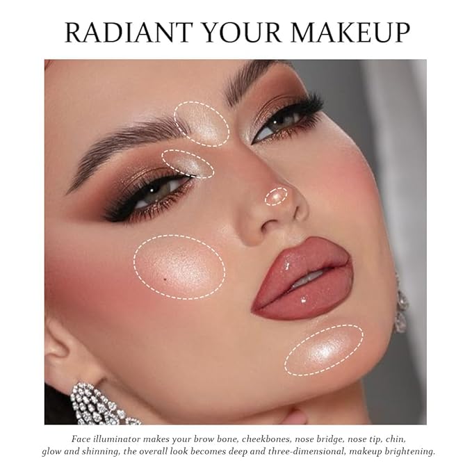 - ❤【Multi-Use Highlighter & Shimmer Eyeshadow】Use this creamy powder as a face highlighter or as a shimmering eyeshadow. It brightens cheekbones, brow bone, inner corners, eyelids, nose bridge, and even lips and body for a radiant all-over glow.