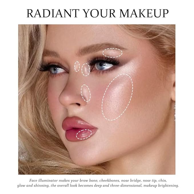 - ❤【Multi-Use Highlighter & Shimmer Eyeshadow】Use this creamy powder as a face highlighter or as a shimmering eyeshadow. It brightens cheekbones, brow bone, inner corners, eyelids, nose bridge, and even lips and body for a radiant all-over glow.