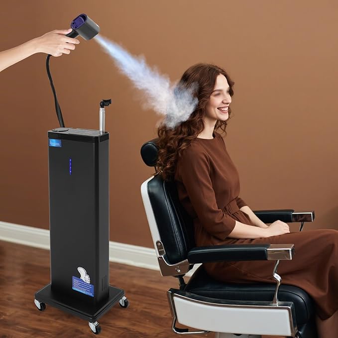 - Professional Nano Repair: With 9 adjustable mist settings, nano-mist, negative ion blue light, and intelligent heating functionality, the standing hair steamer combines hair care, scalp care, and hair nourishment into one, effectively addressing hair issues such as dryness, frizz, nutrient deficiency, or damage caused by chemical treatments.