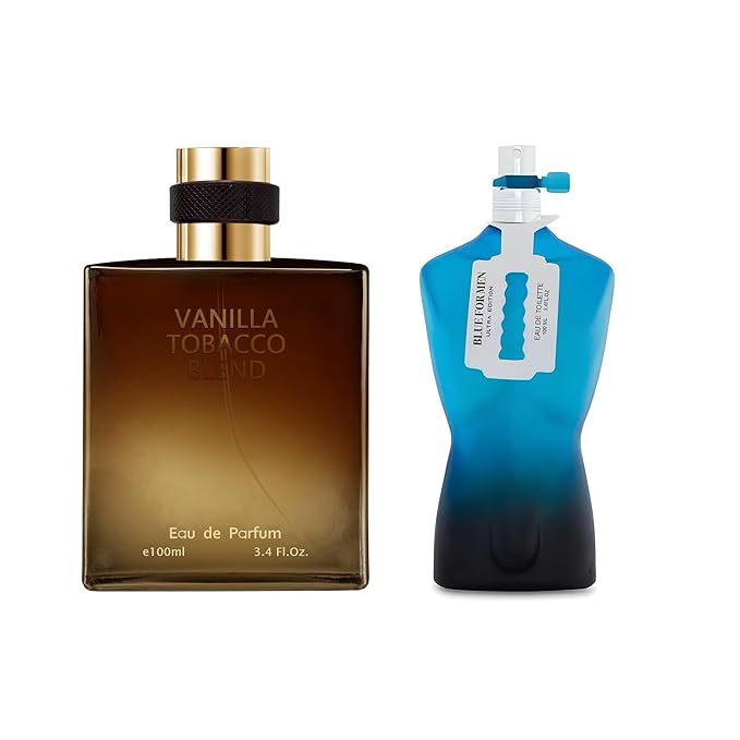 2PCS Mens Perfume Cologne Long Last Strong EDP Natural Spray Gift Set, with Cocoa, Dried Fruits, Woody Fragrance for Daliy Use, 3.4 Fl Oz / 100 mL Each (Blue for Men Ultra blue & Vanilla Tobacco)