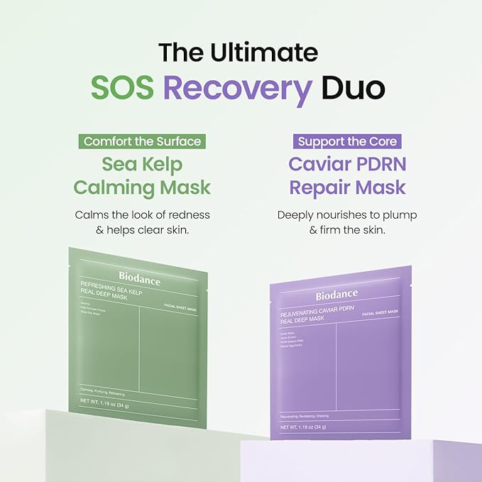 BIODANCE Soothing & Renewal Duo: Sea Kelp & Caviar PDRN Real Deep Overnight Gel Mask for Glass Skin, Korean Skin Care, Valentines Day Gifts for Her, Skin Care Set