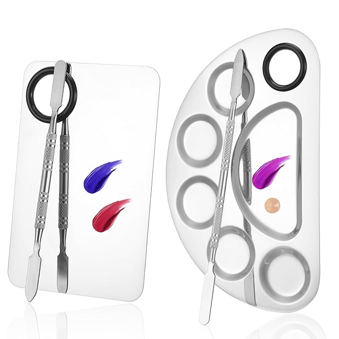- ALL-IN-ONE MAKEUP KIT: This makeup mixing palette set includes a stainless steel square palette, a fan palette and 2 blending spatula. Perfect for creating custom foundation shades, mixing pigments, or blending nail art colors. The professional stainless steel makeup palette is durable and easy to clean.